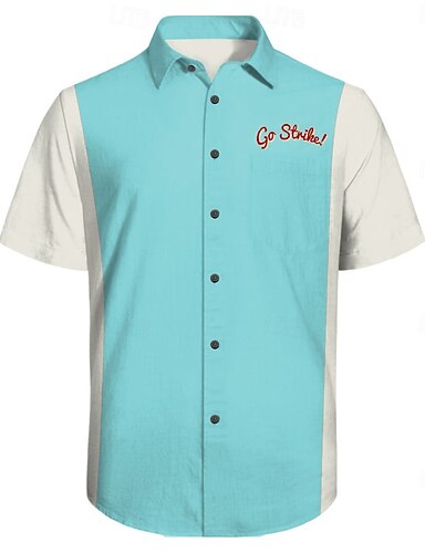 Męskie Litera Koszula do kręgli Zapinana na guziki koszula Krótki rękaw Codzienny Codzienny Lato Wiosna Wieczorne Zapiąć Kieszeń Niebieski