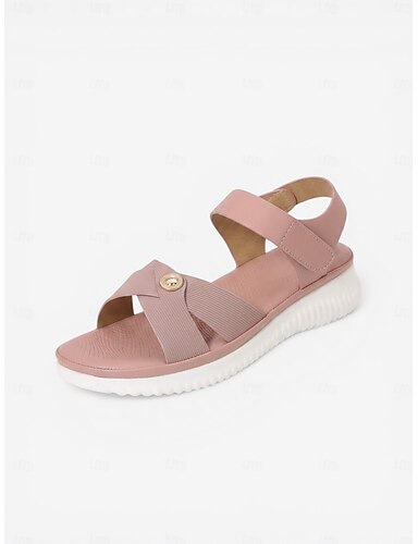Damskie różowe sandały z podparciem łuku stopy i komfortem – elastyczne paski krzyżowe, lekkie sandały sportowe na letnie spacery i podróże &codziennego użytku