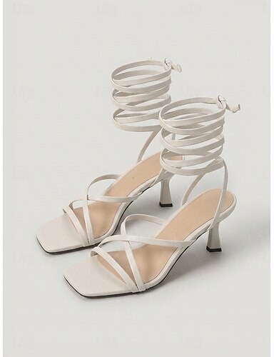 damskie białe, sznurowane sandały na obcasie z paskami – eleganckie buty na koktajlowe przyjęcie