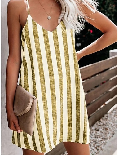 Damskie Sukienka do kolan Sukienka mini Codzienne sukienki Sukienka na ramiączkach Elegancja Moda Nowoczesny Na zewnątrz Urlop Wyjściowe Regularny Prążki Bez rękawów W serek Niebieski Czarny Czerwony