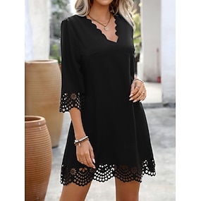 Damskie Sukienka mini Czarna sukienka Codzienne sukienki Sukienka koktajlowa Suknia Podstawowy Codzienny Codzienny Urlop Regularny Równina Rękaw 3/4 W serek Niebieski Czarny Czerwony Lato