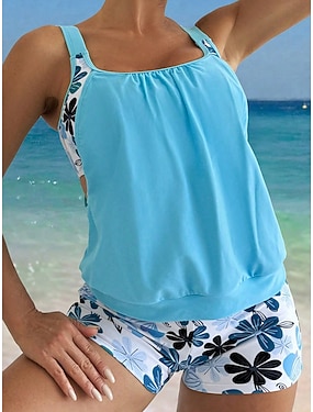 Kobiety Tankini 2-częściowy Kostium Kąpielowy Palma Majtki Aktywne Wakacyjne Kwiatowy Graficzny U Neck Bez Rękawów