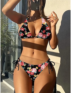 Kobiece bikini 2-częściowy kostium kąpielowy boho odważny otwarty tył seksowny nadruk modny kwiat V drut bez rękawów