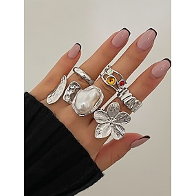 damski 6-częściowy zestaw złotych pierścionków vintage z perłami, kwiatami i akcentami z kamieni szlachetnych – modne pierścionki ze stopu metali na przyjęcia i na co dzień