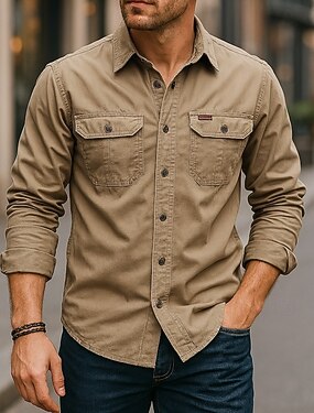 Męskie Koszula Letnia koszula Koszula plażowa koszule w stylu retro Koszula w stylu vintage Koszule niewpuszczone w spodnie Jednokolorowe Urlop Święto Khaki Długi rękaw Odzież