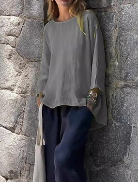 Damskie Koszula Zapiąć Bluzka Sztuczna bawełna len Guziki Jednokolorowe Podstawowy Codzienny Rękaw 3/4 W serek Zwykłe topy Codzienny Szary Lato Wiosna