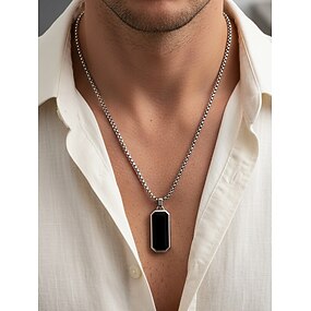 męski naszyjnik ze stali nierdzewnej – czarny onyks, sześciokątny wzór, stylowy łańcuszek, idealny na okazje codzienne i formalne.