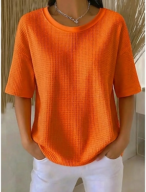 Damskie Koszula waflowa Podkoszulek Koszulki Swetry w wafelkowatej dzianinie Jednokolorowe Klasyczny Nowoczesny Codzienny Krótki rękaw Półgolf Zwykłe topy Codzienny Święto Wyjściowe Czarny Biały