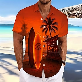 Męskie Drzewo kokosowe Rośliny Tropikalne Deski surfingowe Koszula hawajska Zapinana na guziki koszula Koszula Aloha Krótki rękaw Hawajskie Codzienny Urlop Lato Wiosna Wieczorne Druk 3D koszule z