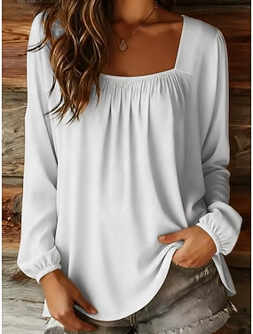 Damskie Tunika Jednokolorowe Elegancja Zabytkowe Elegancki Długi rękaw W serek Zwykłe topy Codzienny Biały Żółty Rumiany róż Zielony Wiosna Jesień