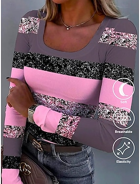 Damskie Koszulki Nadruk Warstwowane Graficzny Geometria Elegancja Zabytkowe Moda Długi rękaw Golf Zwykłe topy Codzienny Wyjściowe Weekend Wino Królewski błękit Fioletowy Zielony Jesień