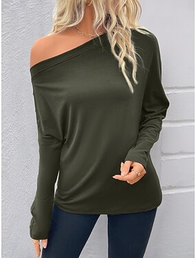 Damskie Podkoszulek Koszulka Równina Moda Elegancki Klasyczny Długi rękaw Asymetryczna szyja Zwykłe topy Codzienny Wyjściowe Weekend Zielony Lato Wiosna Jesień