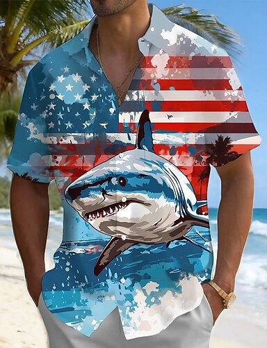 Męskie Rekin 4 lipca 250. rocznica powstania Stanów Zjednoczonych Flaga Ameryki Koszula Letnia koszula Zapinana na guziki koszula Krótki rękaw Patriotyczny Na zewnątrz Święto Lato Wiosna Wieczorne