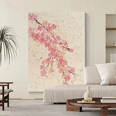 Ręcznie malowany obraz olejny na płótnie, dekoracja ścienna, abstrakcyjna tekstura, malarstwo kwiatowe, różowy kwiat brzoskwini, salon, przedpokój, dekoracja, wystrój domu, malowany na płótnie, bez