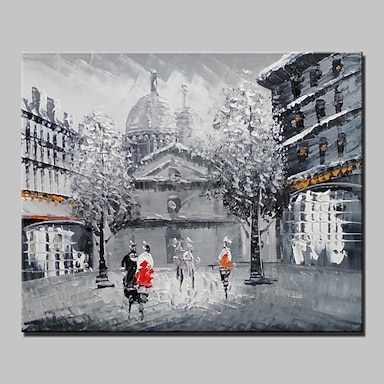 Mini malowane ręcznie malowane miasto miasta nowoczesny obraz olejny na płótnie jeden panel gotowy do zawieszenia