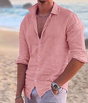 Męskie Koszula lniana koszula Letnia koszula Stroje plażowe Zapinana na guziki koszula Jednokolorowe Na zewnątrz Urlop Czarny Biały Rumiany róż Niebieski Długi rękaw Wieczorne Wiosna i lato Odzież