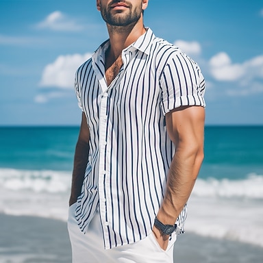 Męskie Geometryczny Paski bretońskie Koszula Letnia koszula Zapinana na guziki koszula Krótki rękaw Moda na co dzień Na zewnątrz Urlop Na co dzień Lato Wiosna Wieczorne Druk 3D koszule z kołnierzykiem
