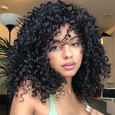 kręcone peruki z grzywką dla czarnych kobiet krótkie kręcone peruki 14 cali afro włosy karnawałowe peruki cosplay na boże narodzenie