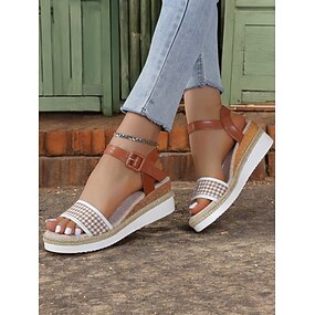 damskie sandały na koturnie z espadrylem w kształcie pepitki i paskiem na kostce – codzienne, letnie sandały na platformie, idealne na wakacje i na co dzień