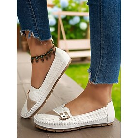 damskie białe perforowane mokasyny z kwiatowym detalem – miękkie, codzienne baleriny na spacery po ogrodzie, do jazdy samochodem i na co dzień zapewniające wygodę