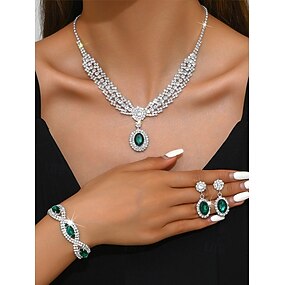luksusowy zielony zestaw biżuterii kryształowej dla kobiet – elegancki naszyjnik, bransoletka i kolczyki, akcesoria ślubne z kryształkami na przyjęcia i formalne wydarzenia