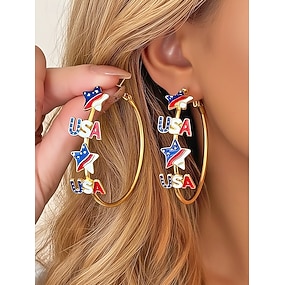 Amerykańskie Damskie Kolczyki W Kształcie Kółek Z Motywem USA Na 250. Rocznicę Czerwone Białe I Niebieskie Gwiazdy Idealne Na USA Dzień Niepodległości I Codzienne Użytkowanie