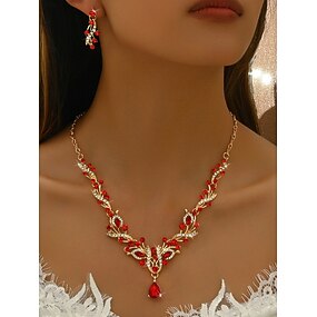 2-częściowy komplet biżuterii damskiej ze złota - naszyjnik z kryształkami w kolorze czerwonym w kształcie łezki &kolczyki, eleganckie dodatki ślubne z kryształkami &imprezy imprezowe