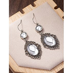 Damskie Kolczyki w kształcie obręczy Czarny Biały Rumiany róż Akryl Stop Elegancja Zabytkowe Moda Owalny