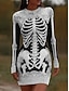 Damskie Sukienka mini Sukienka sweterkowa Urlop Codzienny Boho Codzienny Święto Wyjściowe Szczupła Graficzny Czaszka Długi rękaw Półgolf Czarny Biały Pomarańczowy Jesień Zima