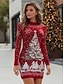 Święta Damskie Sukienka mini Sukienka sweterkowa Urlop Impreza Codzienny Impreza Codzienny Szczupła Choinka Długi rękaw Półgolf Czerwony Zima