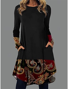 Damskie Sukienka do kolan Sukienka dzianinowa Codzienne sukienki Sukienka t-shirtowa Sukienka letnia Codzienny Regularny Graficzny W Tureckie Wzory Długi rękaw Półgolf Rumiany róż Niebieski Fioletowy