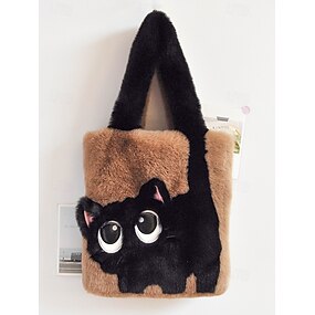 damska pluszowa torba typu tote z motywem kociej buzi, dostępna w wielu kolorach, z miękkiego futerka, o uroczym i zabawnym designie, idealna na niezobowiązujące wyjścia i jako prezent