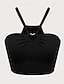 damskie letnie topy sportowe bez rękawów halter neck crop top czarny letni top bez rękawów jednolity kolor stylowy swobodny bez rękawów bez rękawów regularne topy do pracy na co dzień wyjścia
