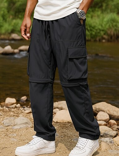 Męskie Spodnie turystyczne Lato Wiosna Jesień Na wolnym powietrzu Przyjazny dla skóry Komfort Multi-Pocket Szybkie wysychanie Spodnie Doły Ściągana na sznurek Elastyczny pas Kieszeń na zamek Czarny