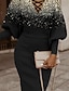 Damskie Sukienka midi Czarna sukienka Sukienka koktajlowa Suknia Sukienka z nadrukiem Nowoczesny Na zewnątrz Wyjściowe Weekend Regularny Przejście kolorów Rękaw 3/4 W serek Czarny i biały Czarny