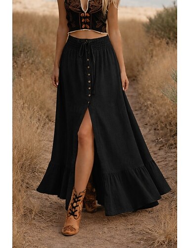 Damskie Spódnica wakacyjna Moda Codzienny Maxi Średni stan Spódnice Nieelastyczny Czarny Biały Lato Bawełna