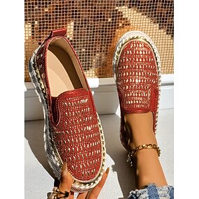 czerwone tkane sandały wsuwane dla kobiet – stylowe koturny, letnie obuwie plażowe i na co dzień na świeżym powietrzu