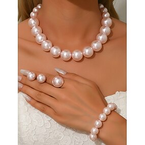 Elegancki komplet biżuterii perłowej dla kobiet - lśniący naszyjnik z imitacji pereł, bransoletka &pierścionek z wyrazistym wzorem, klasyczny styl ślubny dla panien młodych i druhen &ceremonie ślubne