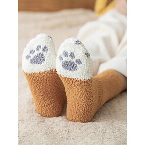 Damskie skarpetki z mieszanki bawełny, zestaw 6 par z nadrukiem łapki kota, różne kolory, miękkie i wygodne do noszenia na co dzień