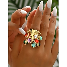 Złoty pierścionek damski z kolorowymi zawieszkami – wyrazista biżuteria koktajlowa w stylu boho na imprezy i festiwale