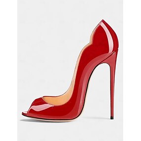 damskie czerwone lakierowane szpilki z odkrytymi palcami i szpilką - seksowne wysokie obcasy na imprezy nocne
