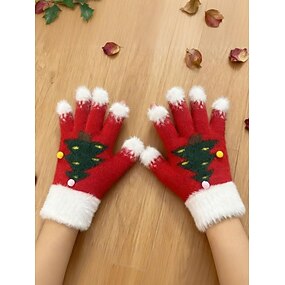 Damskie rękawiczki świąteczne z dzianiny z futerkowymi mankietami i wzorem choinki, ciepłe zimowe rękawiczki dla dorosłych i dzieci, uroczy dodatek na świąteczne przyjęcie