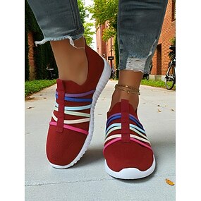 Damskie czerwone wsuwane trampki Flyknit – oddychające, lekkie buty do chodzenia z kolorowymi elastycznymi paskami, idealne na podróże, weekendowe wyjścia i na co dzień