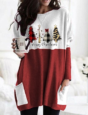 Damskie Sukienka mini Sukienka świąteczna Codzienne sukienki Sukienka z nadrukiem Moda Nowoczesny Święta Na zewnątrz Urlop Regularny Drzewo Długi rękaw Półgolf Czerwony Jesień Zima