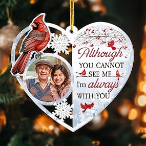 Spersonalizowane ozdoby świąteczne ze zdjęciami, pamiątkowe serce w kształcie kardynała północnego, akrylowe dekoracje 2D, choinka, dekoracja świąteczna, wiszący wisiorek, prezenty