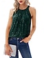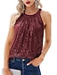 Damskie Top z ramiączkami Jednokolorowe Elegancki Codzienny Bez rękawów Kantarka Zwykłe topy Codzienny Cekiny Szałwiowy Czarny Biały Szampański Wino Lato Wiosna