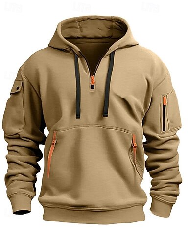 Męskie Bluza z Kapturem Góra turystyczna Bluza sportowa z kapturem Długi rękaw Kaptur Tee Tshirt Top Na wolnym powietrzu Keep Warm Lekki Zima Zamek błyskawiczny Poliester Czarny Zieleń wojskowa