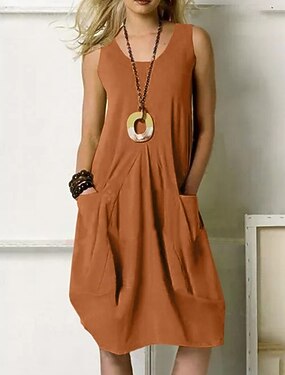 Damskie Sukienka T-shirt Jednokolorowe Elegancja Moda Podstawowy Bez rękawów Bez rękawów Półgolf Zwykłe topy Stroje na imprezy wieczorowe Codzienny Weekend Zamek Kieszeń Zieleń wojskowa Granatowy