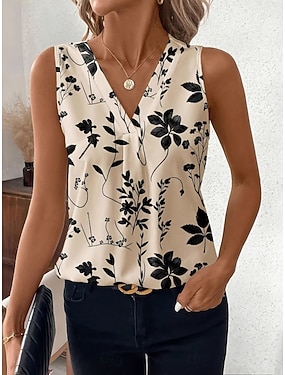 Damskie Top z ramiączkami Kwiaty Codzienny Nowoczesny Bez rękawów W serek Zwykłe topy Codzienny Święto Nadruk Khaki Lato