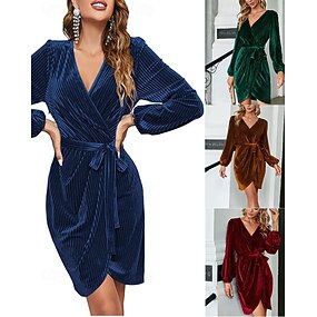 Damskie Sukienka mini Aksamitna sukienka Sukienka na imprezę Elegancja Moda Nowoczesny Impreza Specjalne okazje Regularny Równina Długi rękaw W serek Niebieski Wino Pomarańczowy Zielony Jesień Zima